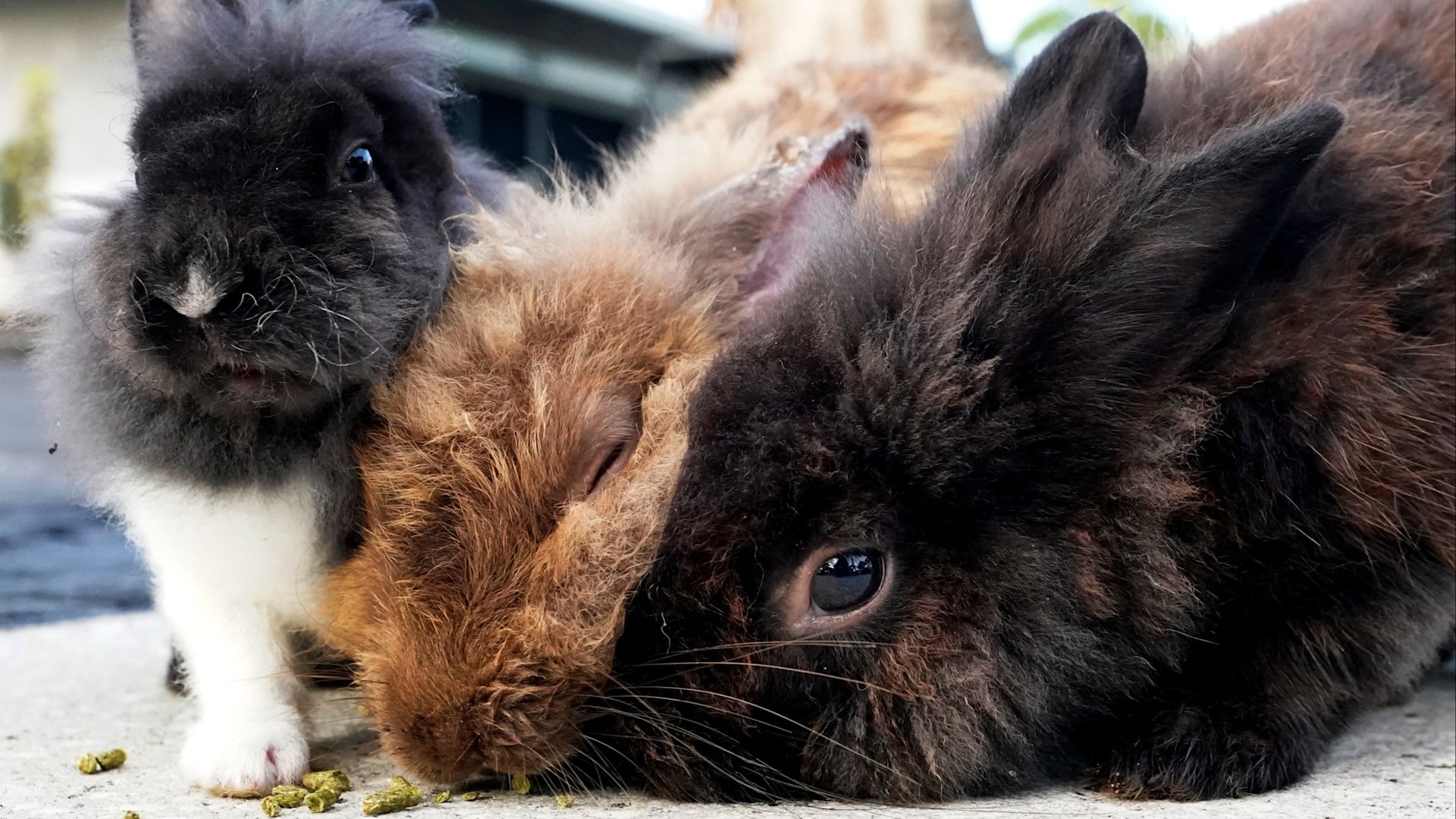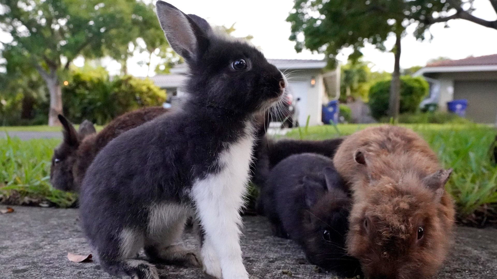 A large group of rabbits gathered on the driveway of Gator Carter, who puts out food for them. He said the lionheads bring the neighborhood joy, and his two young grandchildren love giving them carrots.