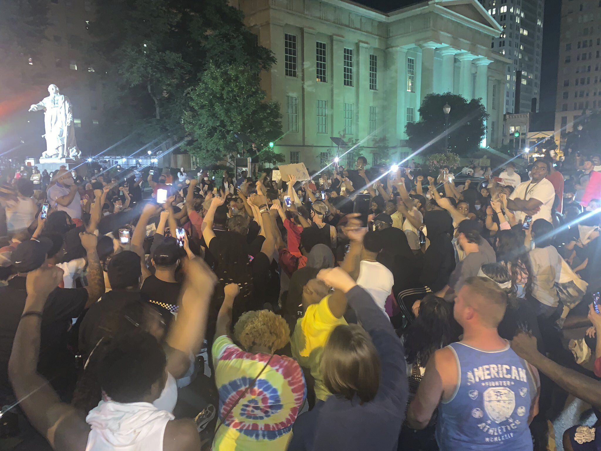 He defended the city's lack of engagement with looters — only a handful of arrests across the first two nights of violence — and said, “We are doing absolutely everything that we can to keep the peace.” He said National Guard members were being stationed in locations to help stem looting, including banks, grocery stores and pharmacies.
