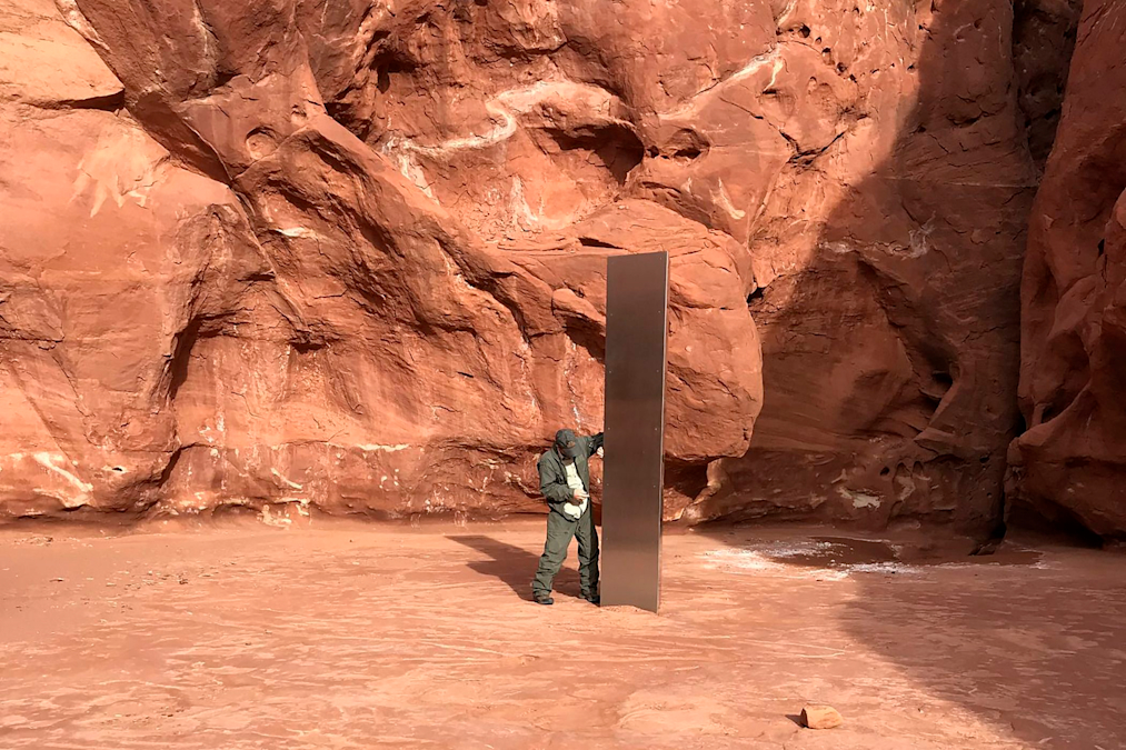 Deep in the Mars-like landscape of Utah's red-rock desert lies a mystery: A gleaming metal monolith in one of the most remote parts of the state.