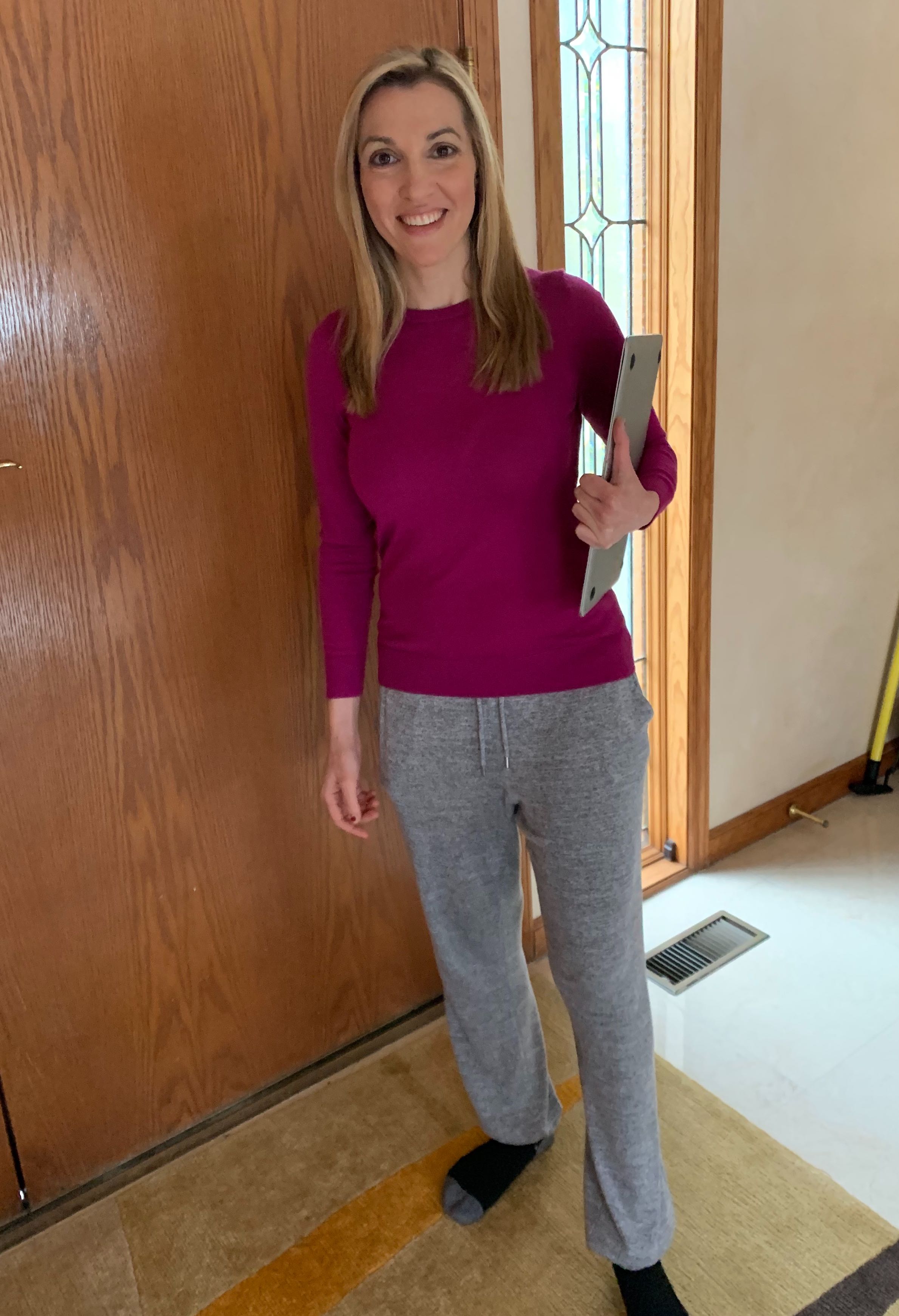 The Work-From-Home Mullet, just like the infamous haircut, is business on top and party on the bottom. But instead of your ‘do, the WFH Mullet is all about your clothes: a business-appropriate top worn with sweats, pajamas or yoga pants. It allows you to look professional while making conference calls, but also maximizes your comfort level while seated for most of the day.