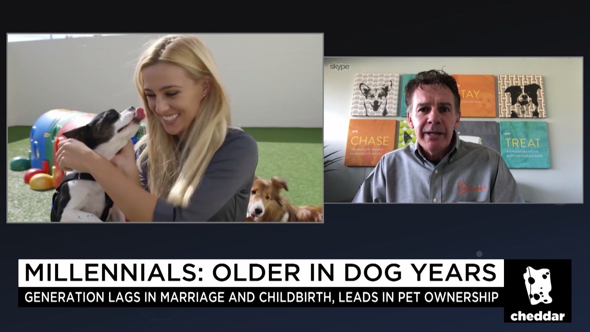 Millennials get blamed for ruining industries every day, but there's one sector their providing a major boost for: the pet business. Dogtopia's Neil Gill joins Cheddar to reveal why Generation Y is causing a boom for the dog-services space.
