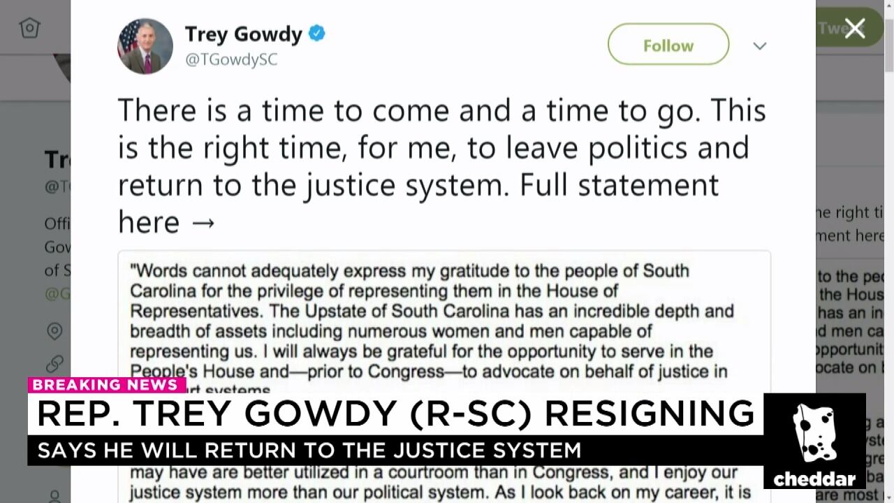 In a surprise announcement on his Twitter account, Rep. Trey Gowdy (R-SC) announced that he would not seek re-election in 2018. Rep. Don Beyer (D-VA) says the fact that Gowdy is retiring from Congress is "remarkable."