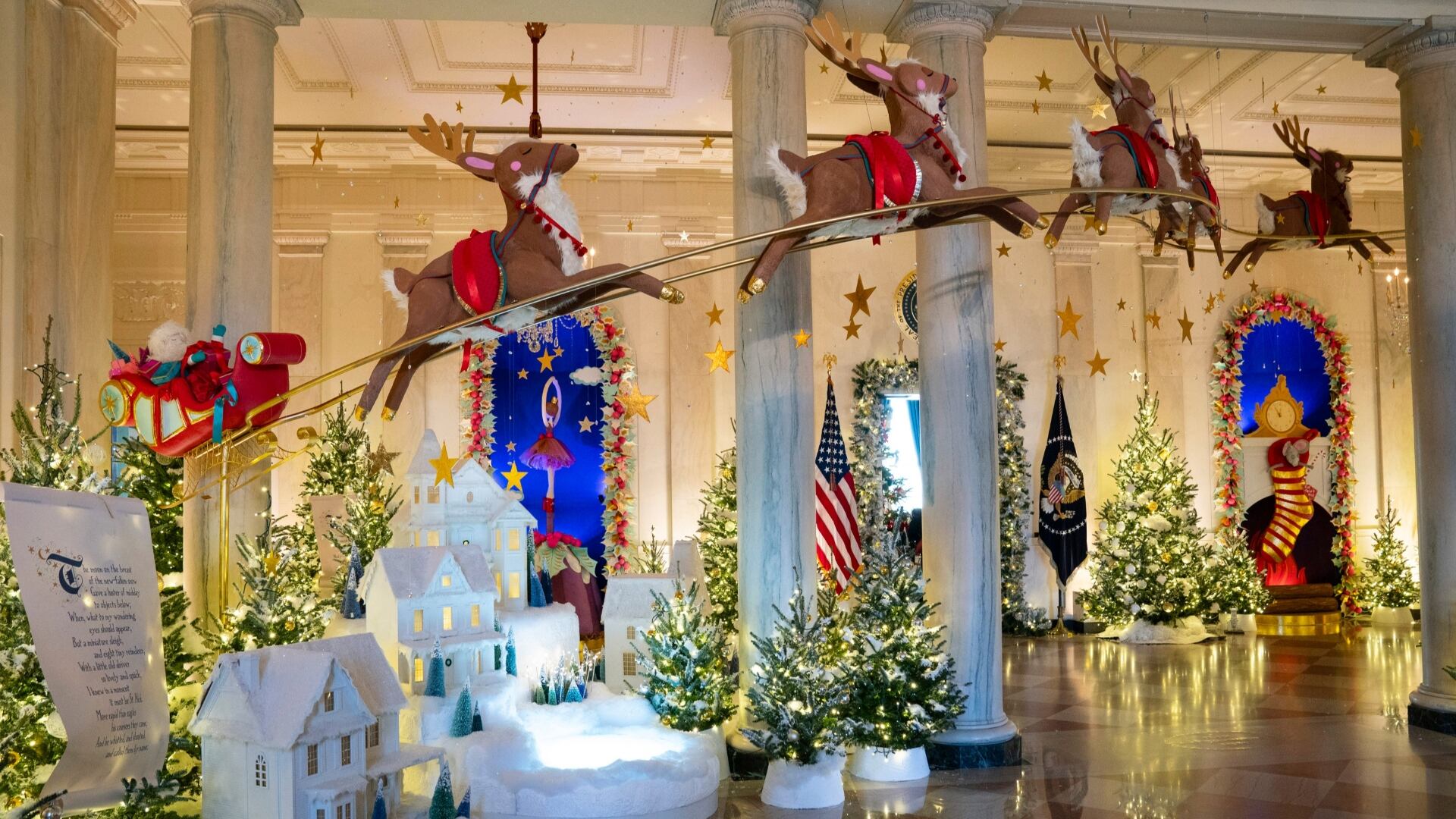Throughout two public floors of the White House, the décor features numerous nods to the 200th anniversary of the publication of the poem and book commonly known as “'Twas the Night Before Christmas."