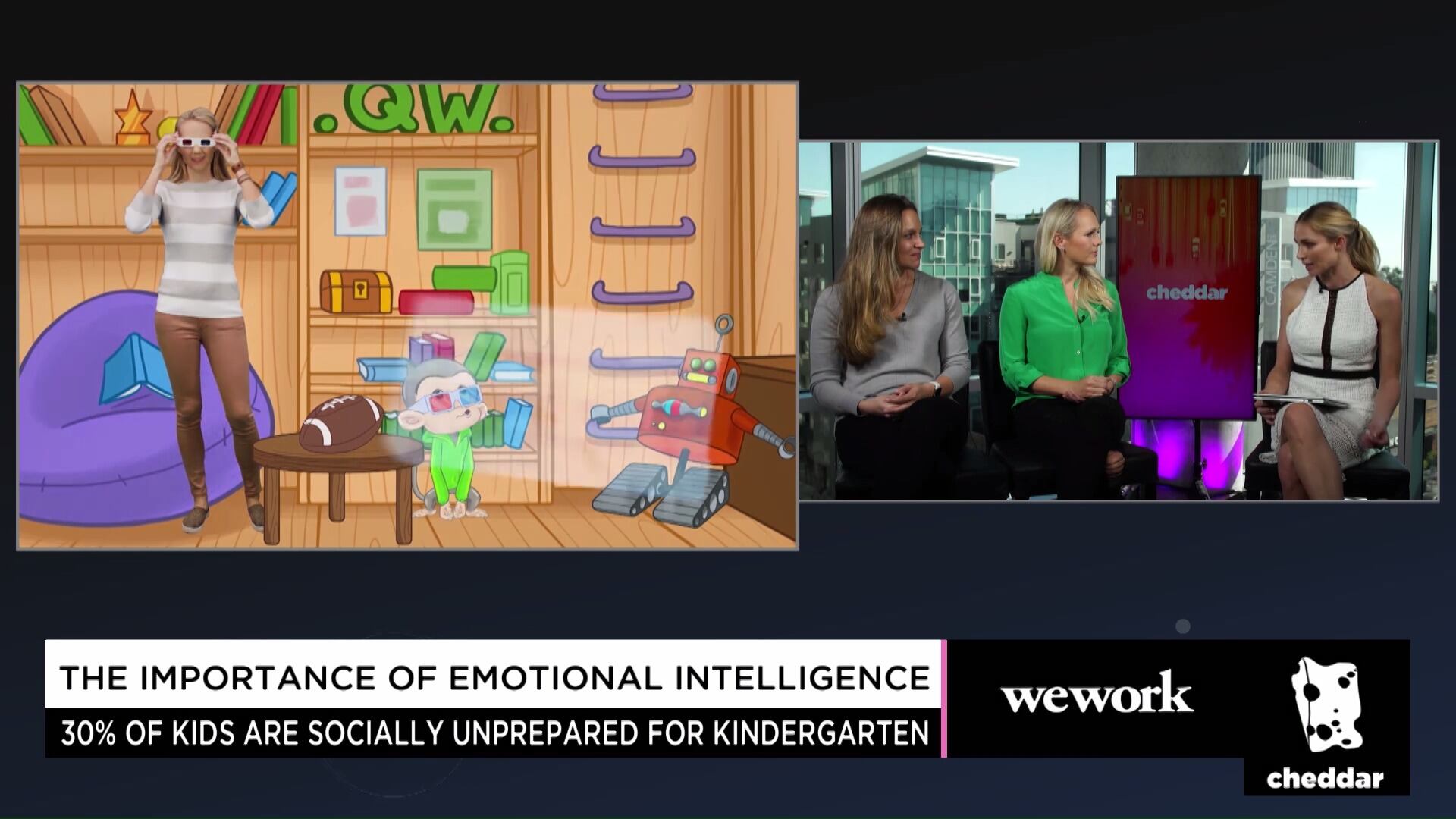 Q Wunder was created to provide parents and teachers simple and entertaining tools to build important life skills in their children through the Q Wunder app, kids show, music, books and games. Founder Sofia Dickens and CEO Erica Buxton sit down with Alyssa Julya Smith in Los Angeles to discuss the importance of emotional intelligence for children and why they think learning this skill is so valuable. Dickens and Buxton discuss the fact that 30 percent of children entering kindergarten don't have the emotional intelligence skills they need as they enter school. They have designed one of the first measurement tools designed to help parents identify and improve their children’s interaction skills in addition to other learning. The duo also discuss having celebrities like Nick Lachey and Michael Strahan in their videos and why they wanted to take time to be in children's videos and interact with them. The videos are meant to be fun and consumable but also teach kids valuable lessons around emotional intelligence. Dickens and Buxton also discuss their relationship with WeWork and how important that has been as they grow and develop their business. They even won the WeWork Demo Day in LA, which awarded them $50,000 to help continue to foster their endeavors.